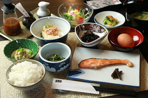 素材の味を生かした田舎朝食は、ほっとする優しい味付けでおもてなし。