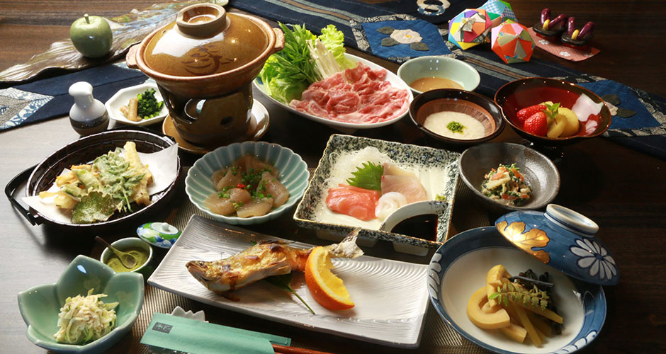さらに旬の野菜と豚のしゃぶしゃぶが夕食をにぎやかにしてくれる。