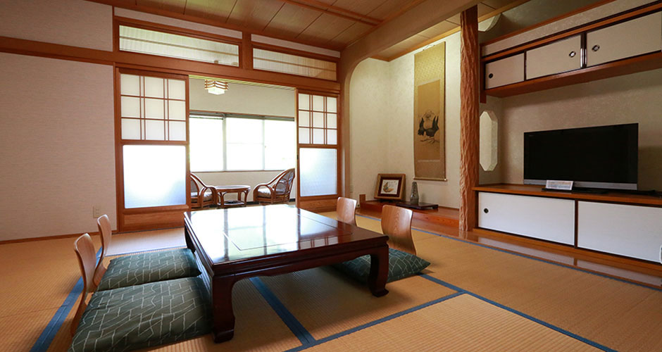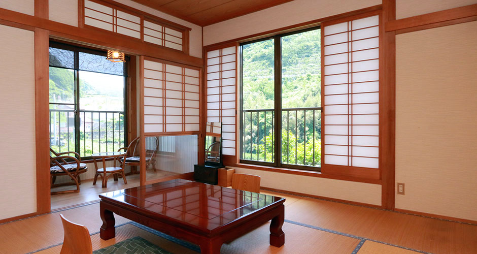 昔ながらの、日本の和室となっています。 縁側からは、川のせせらぎ・・・窓からは柔らかい光・・・ 移りゆく四季を身体で感じとってみては・・・。 春には対岸に咲く『桜』を望めることもできます。 のどかな田舎での休日をお過ごしください。 ※部屋のタイプは人数・料金によって異なりますので、料金プランでご確認ください。