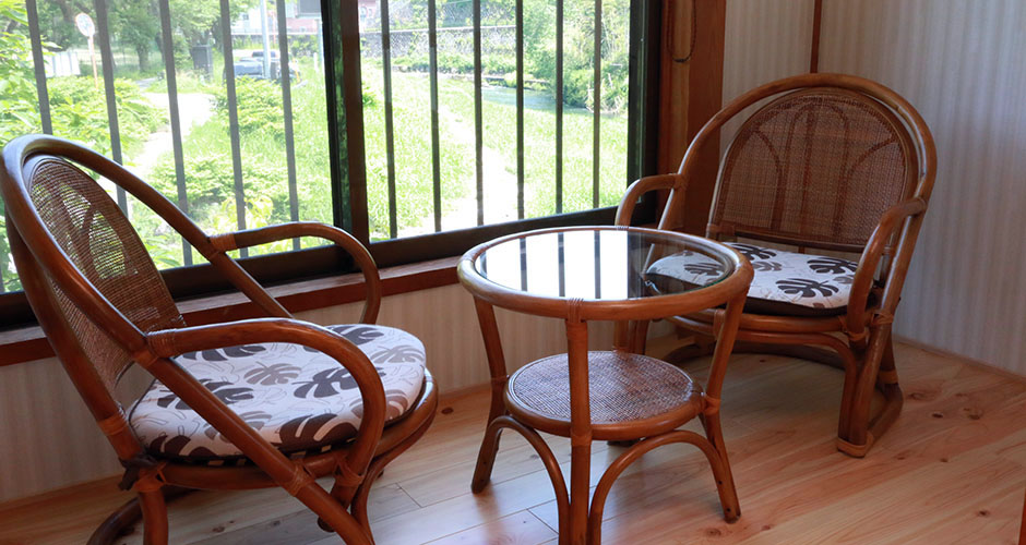 館内は木の温もりとやさしい雰囲気に包まれています。 ほっと落ち着く館内は、ただただゆっくりと過ごしたいというお客様の為の空間です。