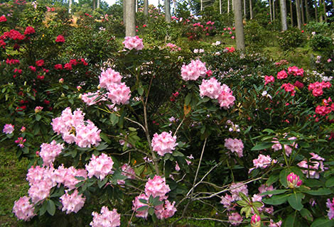 1,000㎡の敷地に約20種7,000本のしゃくなげが咲き誇る。山の持ち主が十数年かけ、一株一株丁寧に植えつけたしゃくなげは壮観。
