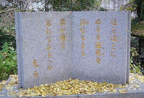 斎藤茂吉が病気療養で古湯温泉に滞在したときに詠んだ全38首の歌の一つ 【うつせみの病やしなふ寂しさは川上川のみなもとどころ】という歌を刻んでいます。